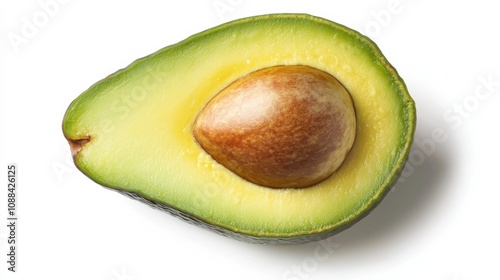perfectly, ripe, avocado, sliced, open, reveal, creamy, green, interior, its, smooth, texture, subtile, variation, colours, captured, exquisite, detail, set, isolated, white, background, highlight, natural, attracted
