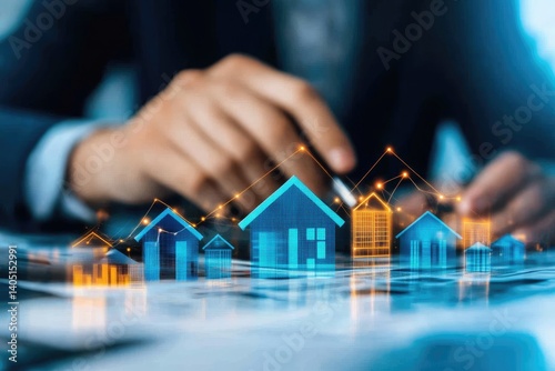 real estate, investment, growth, holographic, house, graph, line, analysing, person, business, finance, property, market, trend, datum, technology, future, innovation, digital, virtual, concept, planning, strategy, success, wealth, opportunity, economy, building, architecture, design, modern, urban, residential, development, estate, broker, agent, mortgage, loan, insurance, risk, management, portfolio, asset, value, return