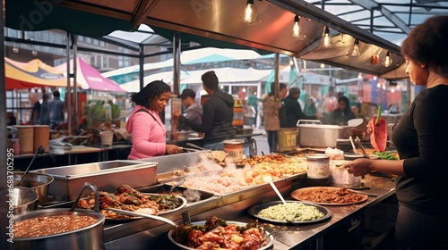 person, food, clothing, fast food, meal, delicacy, cooking, snack, indoor, buffet, people, ceiling, preparing, woman, market