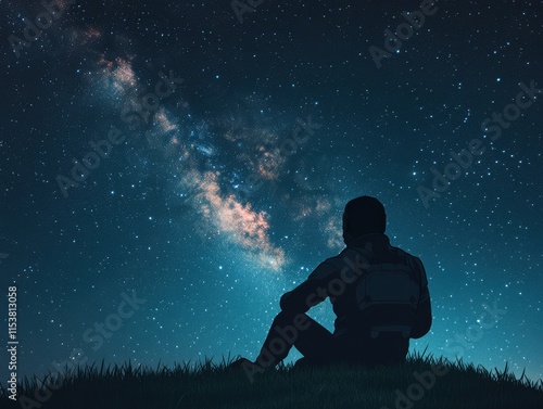 A person gazes at a star-filled sky, lost in thought.