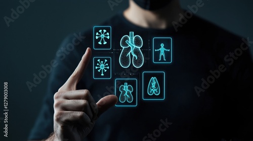 A person interacts with digital health icons, emphasizing technology's role in modern healthcare management.