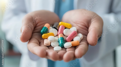 person, holding, bunch, pill, hand, different, colours, medication, mix, medicine, size, type, white, drug, wearing, health, laboratory, coat, capsule, pharmacy, painkiller, treatment, vitamin, disease, tablet, care, healthy, antibiotic, drugged, pharmaceutical, prescription, disease, make well, pain, closeup, sick, woman, background, health care, hospital, doctor, palm, health care, female, showing, medicine, addiction, pharmacology, patient