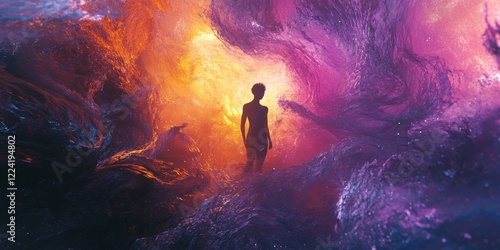 person, standing, purple, orange, space, wearing, shirt, universe, star, galaxy, light, background, science, nebula, cosmos, sky, astronomy, fantasy, art, illustration, abstract, planet, night, outer, cosmic, blue, glowing, explosion, beautiful, solar, nature, exploration, graphic, imagination, artwork, orbit, acrylic, red, watercolor, man, colourful, dust, painting