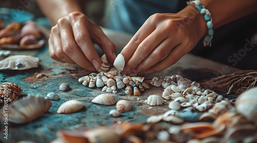 A person making a lucky charm from seashells and stones