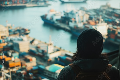 person, harbor, ledge, waterfront, edge, coastal, ocean, sea, view, scenic, scenery, landscape, outdoors, nature, blue, calm, peaceful, relaxing, serenity, calmness