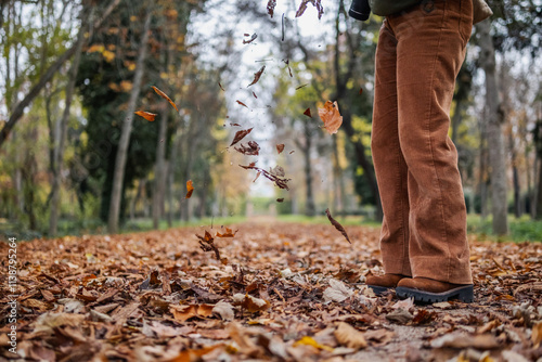autumn, fall, standing still, falling leaves, park, nature, peace, mindfulness, warm tones, foliage, golden hour, calmness, seasonal, serene, contemplation