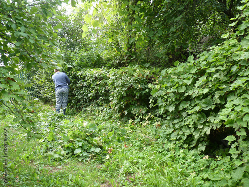overgrown, vine, wall, person, lush, rural, ukraine, europa, east europe, garden, yard, exterior, nature, outdoors, plant, growth, summer, day, overcast, working, trimming, home, property, vegetation, foliage, simple, traditional, village, natural, environment, nobody, peaceful, serene, tranquil, quiet, charme, idylli, gardening