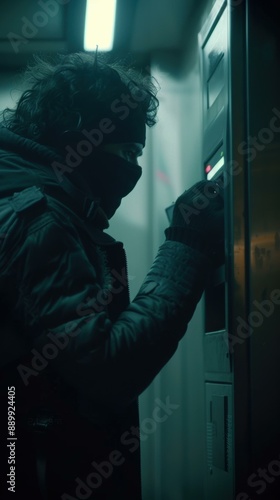 person, mask, ticket, machine, subway, transportation, travel, urban, city, night, man, one person, thief, burglar, security, datum, indoor, technology, dark, adult, male, danger, hood, clothing, crime, computer, violence, cyberspace, equipment, glacé, working, computer network, surveillance, disguise, woman, burglary, terrorism, door, weapon, mystery, criminal, network security, armed forces, 1, man