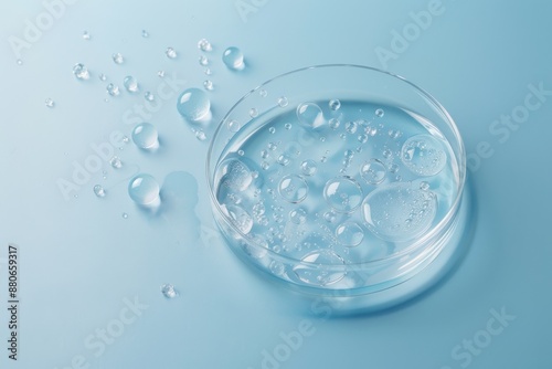 acid, drop, liquid, petri, dish, laboratory, science, chemistry, research, skincare, cosmetic, beauty, transparent, clear, blue, background, surface, experiment, water, hydratation, serum, product, laboratory, glasses, closeup, macro, scientific, sterile, medicine, biology, aesthetic, minimalist, texture, composition, concept, design, visual, abstract, professional