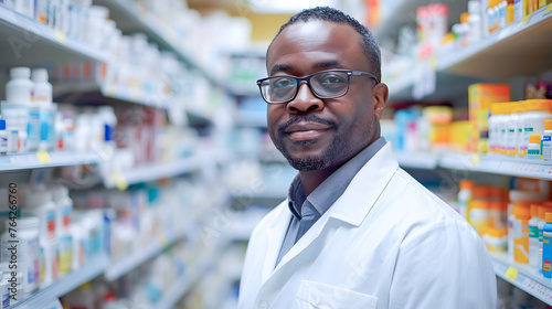 apothecary, pharmacy, aisle, medication, health care, professional, man, standing, shelf, drug, health, chemist's shop, prescription, medicals, men at work, retail, store, uniform, pharmaceutical, clinical, pharmaceutical, medicine, expertise, occupation, pharmaceutical industry, medical supplies, generative, ai
