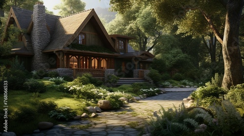 building, bungalow, house, housing, path, paseo, flagged, grass, nature, outdoors, scenery, landscape, tree, road, backyard, yard, garden, neighbourhood, resort, villa, environment, object, meadow, transportation, way, luxury home, place, courtyard, architecture, pasture, forest, technology, location, culture