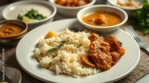 food, rice, meal, chicken, meat, dinner, plate, dish, fried, lunch, healthy, sauce, white, vegetable, cookery, curry, vegetable, salad, green, pasta, pork meat, delicious, cooked, shrimp, pepper