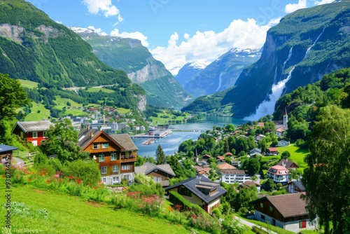 A Photography of Majestic Fjord Scenery: A breathtaking fjord landscape with steep cliffs and calm waters showcases the exuberance of coastal geology and natural beau