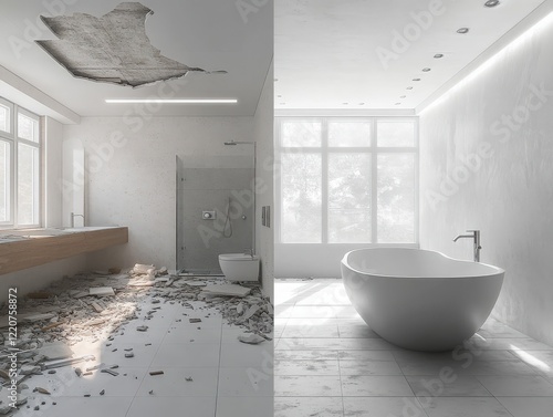 remodel, remodelling, bathroom, renovation, renovate, shower, privies, plumbing, room, transformation, tile, closeup, sink, indoor, house, improvement, before, after, interior, building, cabinet, cleanliness, flooring, construction, upgrade, clean, beautiful, vanity, modern, mirror, water, decoration, lighting, wall, decor, old, showcase, spa, home, indoor, space, detailing, background, colourful, minimalist, countertop, bright, fresh, new