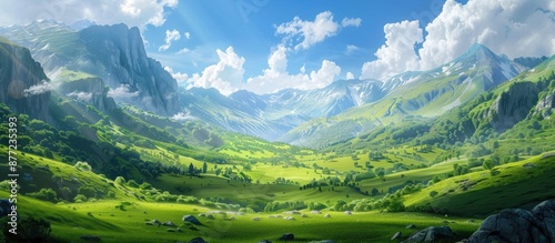 A picturesque depiction of vibrant green landscapes in a natural setting with ample space for additional imagery