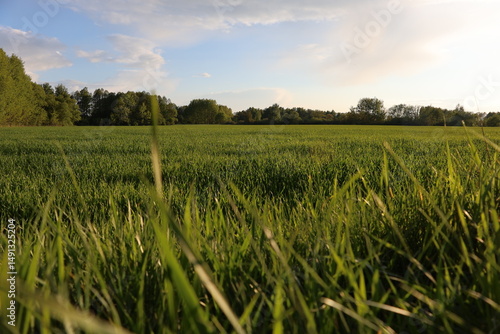 field, sunset, landscape, nature, green, grass, sky, light, rural, peaceful, evening, scenic, gold, outdoors, horizon, sun, calm, glow, countryside, natural, greenfield, golden hour, summer evening, warm light, meadow, agriculture, wheat, season, country, farming