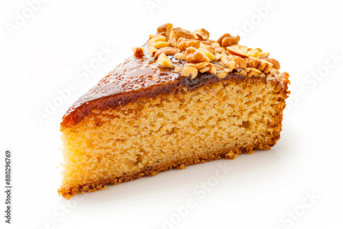 a piece of cake with nuts on top