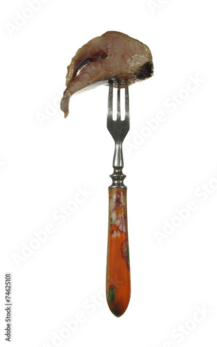 piece, herring, old, male, fish, salt, food, cutlery, isolated, colours
