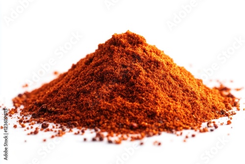 A pile of chili powder sits on a white surface, ready for use in cooking