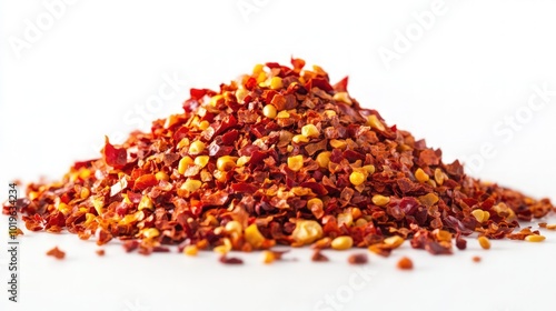 red, pepper, chili, flake, spice, seasoning, food, ingredient, culinary, hot, spicey, favor, cookery, cooking, dish, meal, aromatic, pungent, dry, crunchy, powder, garnish, sprinkle, condiment, taste, heat, white, background, isolated, macro, closeup, texture, epicure, organic, natural, healthy, kitchen, receipe