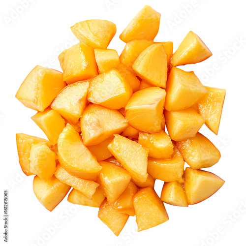 A pile of diced peaches isolated on white background