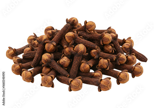 A pile of dried whole cloves aromatic spice isolated on transparent background