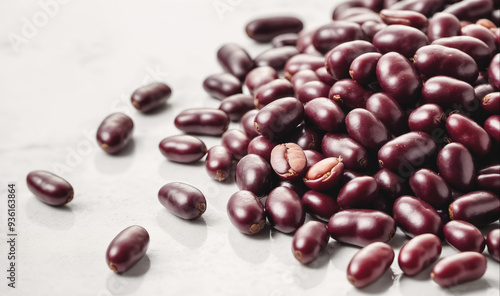 A pile of red beans sits on a white countertop