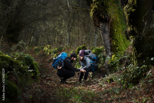 pilgrim, injury, break, fatigue, hardness, encourage, help, galicia, santiago de compostela, pain, pilgrimage, spiritual, faith, chat, hiking, walker, nature, couple, man, woman, youth, walking, path, forest, christian, happiness, sacrifice, spain, backpack, adventure, illuminated, travel, route, search, sporty, orense, green, sitting, challenge