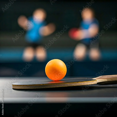 a ping pong ball on a paddle , with a blurred crowd background, symbolizing competitive spirit.