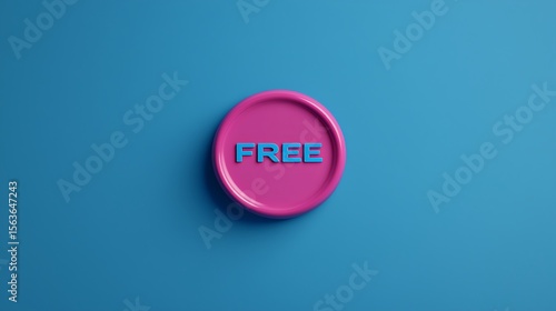 A pink circular badge with the word "FREE" in blue letters, set against a solid blue background.