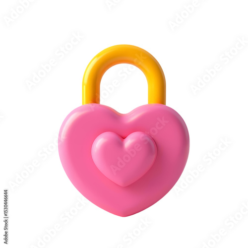 A pink heart shaped padlock with a yellow handle on isolated on transparent background