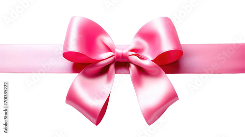 A pink satin ribbon tied in a bow, isolated on a white background with soft shadows