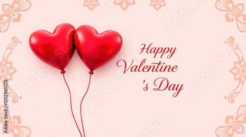 A pink Valentine's Day greeting card adorned with red hearts and a romantic balloon celebrates love