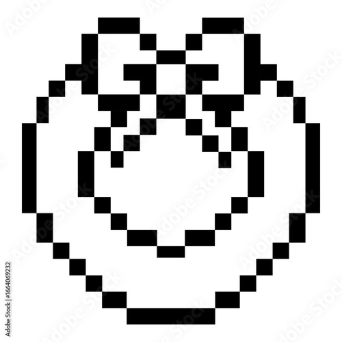 A Pixelated heart-shaped bow with a lovely design. This design could be suitable for various applications, like a button or an icon