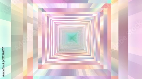 A pixelated illusion art design with staggered squares that shift and distort, creating a mesmerizing depth effect in soft pastel colors