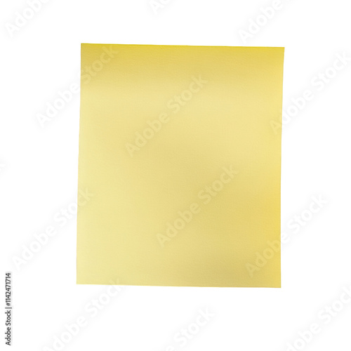 A plain yellow sticky note, square in shape, with a smooth surface, ready for writing or posting reminders on white background , cut out.