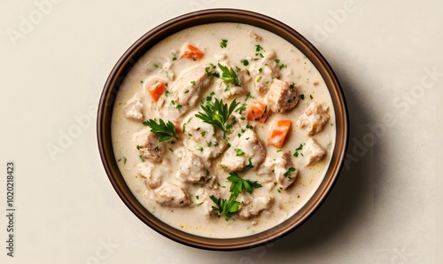 A plate of blanquette de veau, a creamy veal stew, Generative AI
