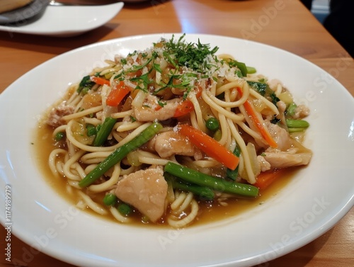 plate, noodle, meat, vegetable, long, thin, carrot, green, bean, cookery, dish, meal, asian, dinner, delicious, chinese, traditional, sauce, healthy, lunch, asia, epicure, tasty, hot, white, cooking, eatery, background, spicey, chicken, fresh, pork meat, bowl, japanese, eat, stir, chopstick, fries, diet, closeup, thai, stir-fried, oriental, soup, soy, red, rice, onion