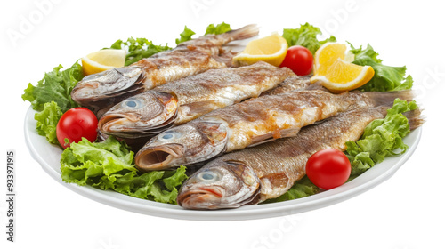 fresh, plate, dinner, seafood, cooking, fried, lemon, baked, epicure, healthy, grilled, prepared, food, white, dish, meal, trout, lunch, fish, vegetable, diet, sardine, bream, salad, green, roasted, isolated, generative, sea, meat, cookery, ai, mediterranean