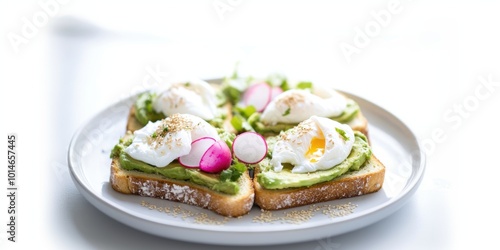arranged, avocado, attractively, egg, food, epicure, plate, serving, toast, traditional