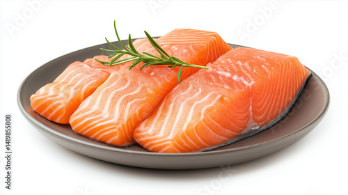 a Plate of Fresh Salmons fillet, Isolated on White Background