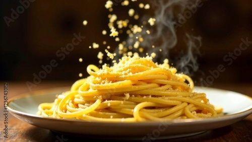 spaghetti, food, pasta, meal, lunch, dish, dinner, plate, italian, cooked, cookery, delicious, white, healthy, traditional, yellow, tasty, diet, cheese, background, table, noodle, epicure, homemade, fresh, fork, parmesan, sauce, ingredient, nourishment, tagliatelle, eat, mediterranean, pepper, horizontal
