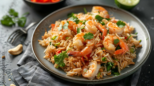 A plate of sweet and savory Thai peanut fried rice with shrimp