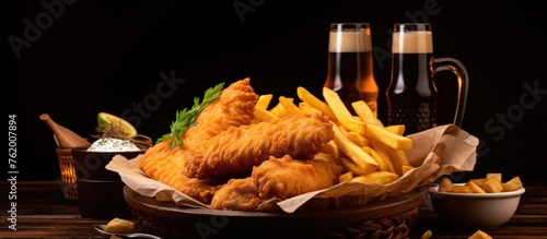 platter, fried, fish, chips, basket, glasses, beer, arrangement, potato, refreshing, accompaniment, meal, pub, crispy, delicious, gold, fried, seafood, alcohol, lemon, tartar, sauce, garnish, beverage, appetising, lunch, dinner, tasty, snack, crunchy, battered, malt, bar, traditional, classic, homemade, fisherman, portion, bistro, eatery, ocean, beach, dish, tavern, culinary