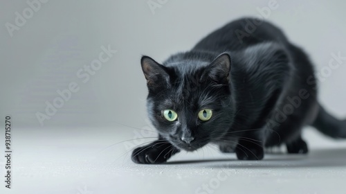 playful, black, cat, arched, back, glowing, green, eye, photo, domestic cat, no people, color image, pet, animal, horizontal, cute, domestic animals, felino, animal themes, kitten, one animal, mammal, white background, cut-out, studio shot, outdoors, fun, paw, copy space, day, vertical, looking, closeup, beauty, indoor, tail, lying down, humor, relaxation, curiosity, stretching, portrait, half face, nature