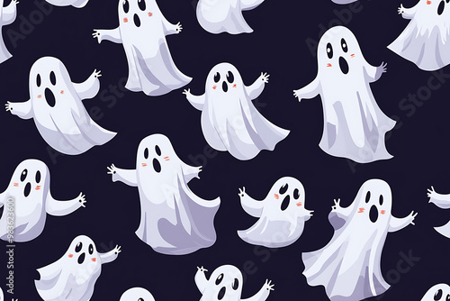 ghost, pattern, cartoon, halloween, seamless, skittish, cute, scarey, white, dark, design, expression, fright, playful, character, ghost, background, wallpaper, surprise, whimsical