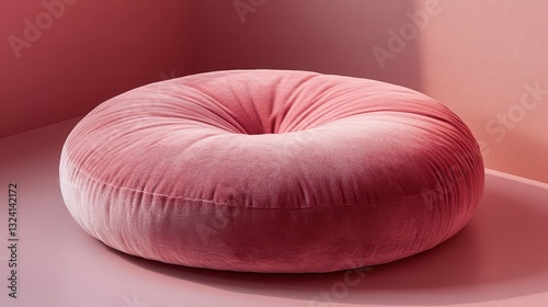 A plush, rounded cushion in hues of pink sat majestically on a velvety pink surface, exuding an aura of softness and tranquility.