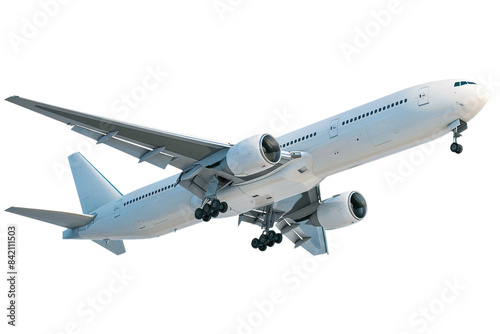 A PNG image of an airplane showcases a sleek, modern airliner in flight
