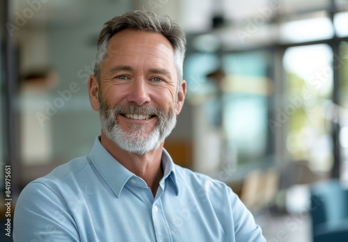 A portrait of a middle-aged man in an office