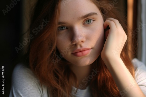 A portrait of a young and beautiful woman with no make up